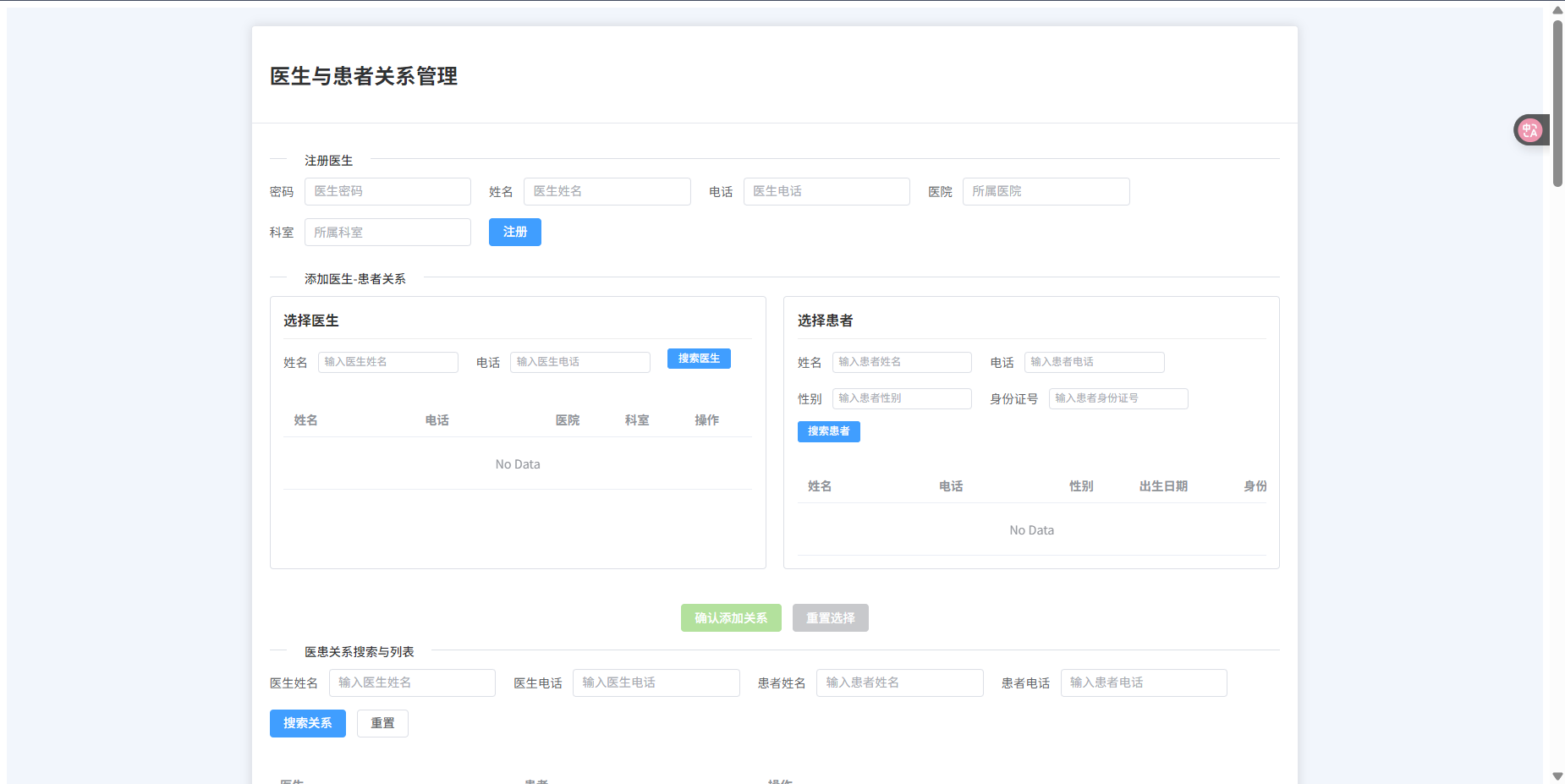 - Added CRUD operations for doctors, patients, and doctor-patient relationships.